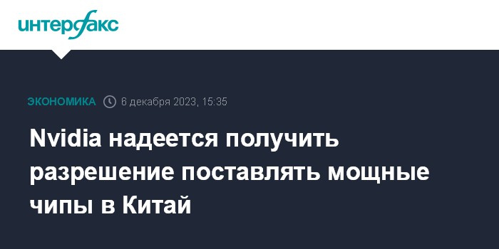 Nvidia надеется получить разрешение поставлять мощные чипы в Китай