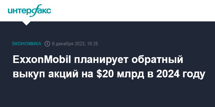 ExxonMobil планирует обратный выкуп акций на $20 млрд в 2024 году