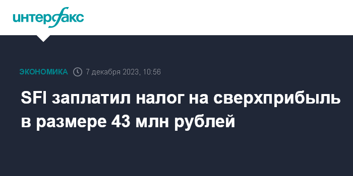 SFI заплатил налог на сверхприбыль в размере 43 млн рублей