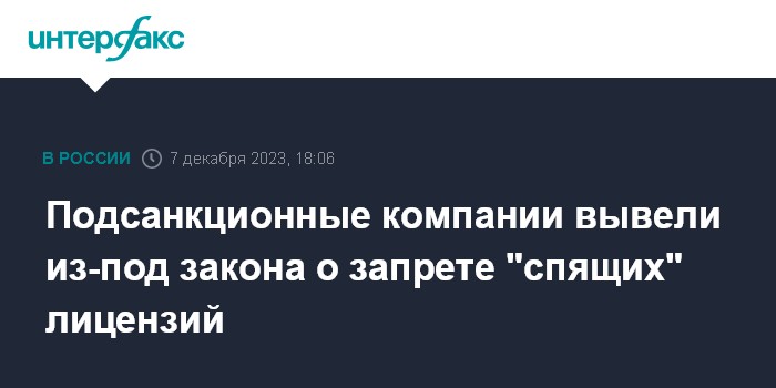 Подсанкционные компании вывели из-под закона о запрете "спящих" лицензий