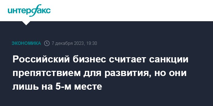 Российский бизнес считает санкции препятствием для развития, но они лишь на 5-м месте