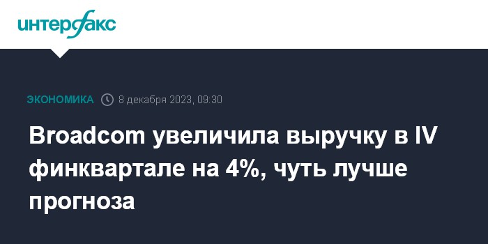 Broadcom увеличила выручку в IV финквартале на 4%, чуть лучше прогноза