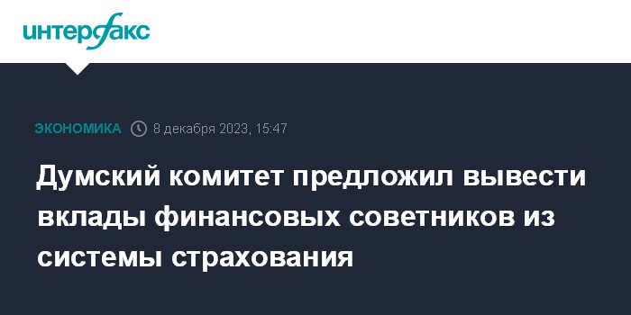 Думский комитет предложил вывести вклады финансовых советников из системы страхования