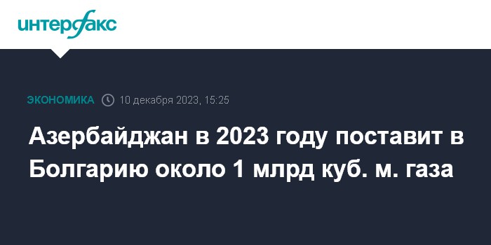 Москва. 10 декабря. INTERFAX.RU - Поставки азербайджанского газа в Болгарию в 2023 году составят около 1 млрд кубометров, заявил в воскресенье президент Азербайджана Ильхам Алиев.