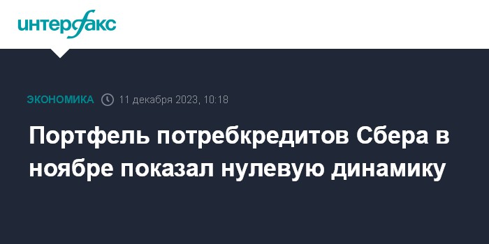 Портфель потребкредитов Сбера в ноябре показал нулевую динамику