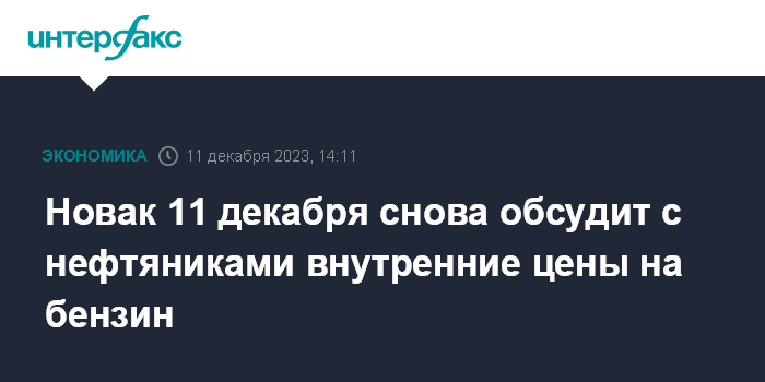 Новак 11 декабря снова обсудит с нефтяниками внутренние цены на бензин
