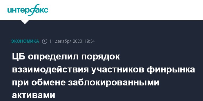 ЦБ определил порядок взаимодействия участников финрынка при обмене заблокированными активами