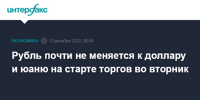 Москва. 12 декабря. INTERFAX.RU - Доллар США и юань почти не изменились на Московской бирже утром во вторник, рубль лег в боковой дрейф в ожидании новых торговых идей.
