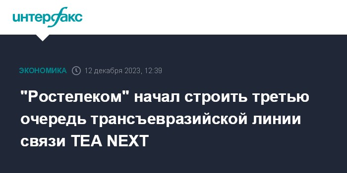 "Проект TEA NEXT является одним из ключевых для "Ростелекома". Проект напрямую нацелен на наращивание экспортного телекоммуникационного потенциала страны, связанного с ростом трафика, передаваемого между Европой и Азиатско-Тихоокеанским регионом", - приводятся в сообщении слова президента "Ростелекома" Михаила Осеевского.