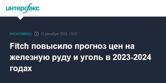 Москва. 12 декабря. INTERFAX.RU - Международное рейтинговое агентство Fitch Ratings пересмотрело оценки стоимости железной руды, цветных металлов и угля на краткосрочную и среднесрочную перспективу, которые оно использует в прогнозах операционной деятельности и финансовых показателей компаний отрасли.