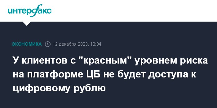 У клиентов с "красным" уровнем риска на платформе ЦБ не будет доступа к цифровому рублю