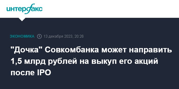 "Дочка" Совкомбанка может направить 1,5 млрд рублей на выкуп его акций после IPO
