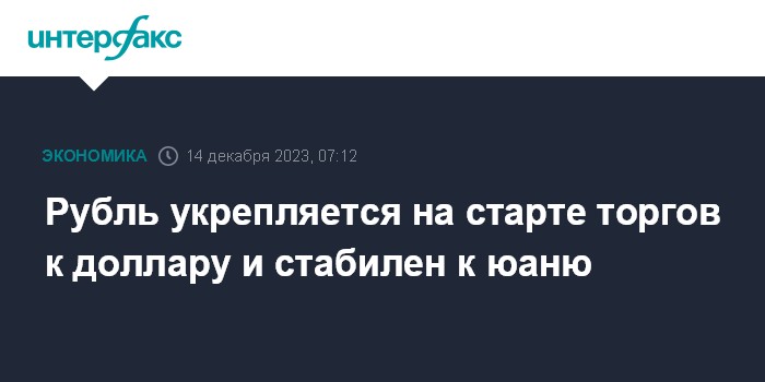 Москва. 14 декабря. INTERFAX.RU - Доллар США снижается, юань почти стабилен на Московской бирже утром в четверг, рубль укрепляется с учетом оптимизма на мировых рынках и на прогнозах итогов предстоящего заседания ЦБ России, на котором ожидается очередное повышение ключевой процентной ставки.