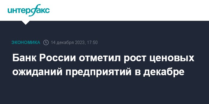 Банк России отметил рост ценовых ожиданий предприятий в декабре