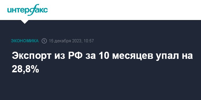 Экспорт из РФ за 10 месяцев упал на 28,8%
