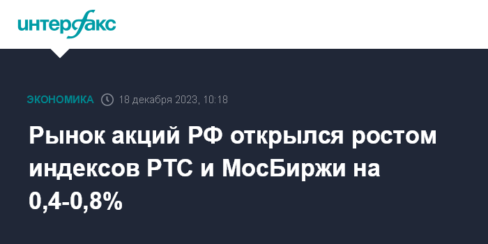 Рынок акций РФ открылся ростом индексов РТС и МосБиржи на 0,4-0,8%
