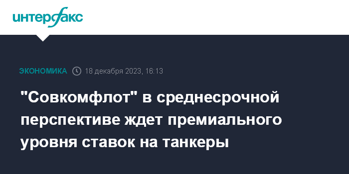 "Совкомфлот" в среднесрочной перспективе ждет премиального уровня ставок на танкеры