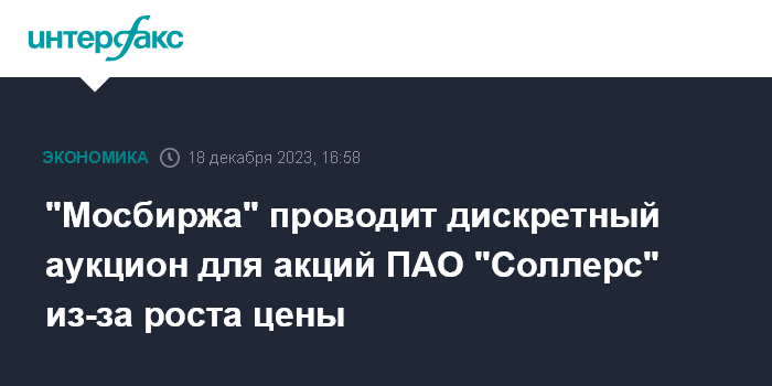 "Мосбиржа" проводит дискретный аукцион для акций ПАО "Соллерс" из-за роста цены