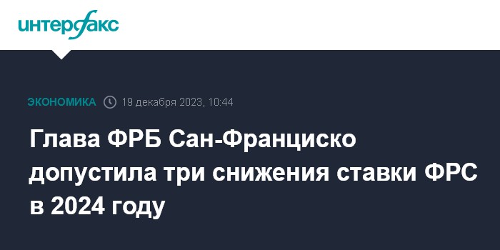 Глава ФРБ Сан-Франциско допустила три снижения ставки ФРС в 2024 году