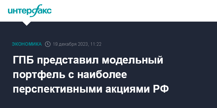 Москва. 19 декабря. INTERFAX.RU - Газпромбанк представил модельный портфель российских акций на 2024 год с наиболее перспективными бумагами по соотношению риска и доходности, говорится в обзоре банка.