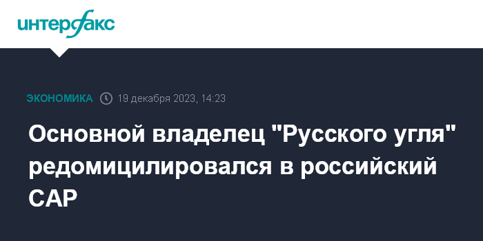 Основной владелец "Русского угля" редомицилировался в российский САР
