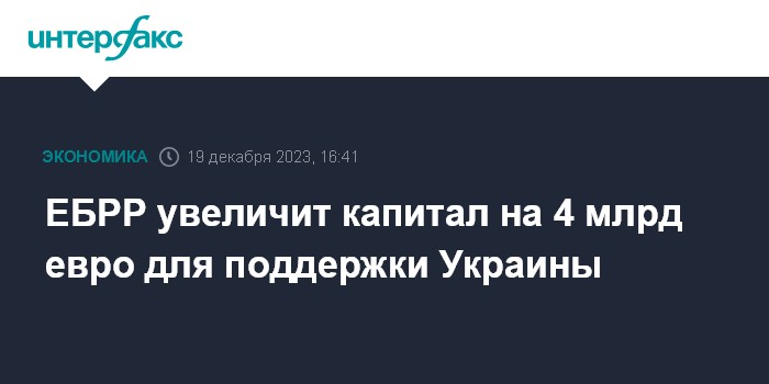 ЕБРР увеличит капитал на 4 млрд евро для поддержки Украины