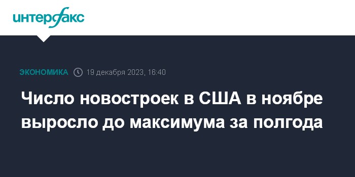 Число новостроек в США в ноябре выросло до максимума за полгода