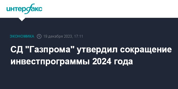 СД "Газпрома" утвердил сокращение инвестпрограммы 2024 года