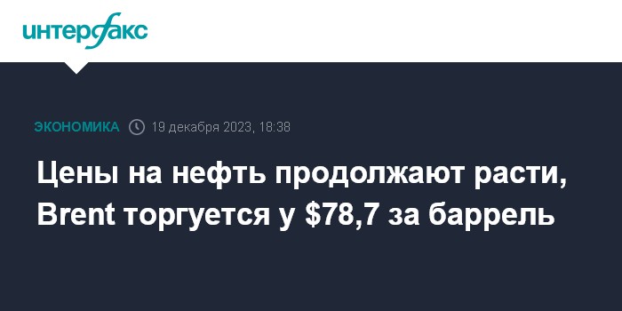Москва. 19 декабря. INTERFAX.RU - Цены на нефть продолжают расти во вторник из-за опасений перебоев в поставках сырья через Красное море в связи с атаками йеменских хуситов на морские суда.