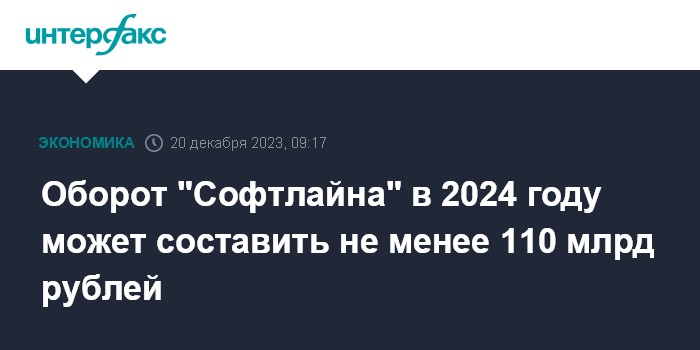 Москва. 20 декабря. INTERFAX.RU - Оборот группы "Софтлайн" в 2024 году может составить не менее 110 млрд рублей, говорится в сообщении компании.