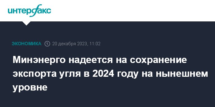Минэнерго надеется на сохранение экспорта угля в 2024 году на нынешнем уровне