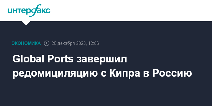 Москва. 20 декабря. INTERFAX.RU - Global Ports завершил процесс перерегистрации с Кипра в российскую юрисдикцию.