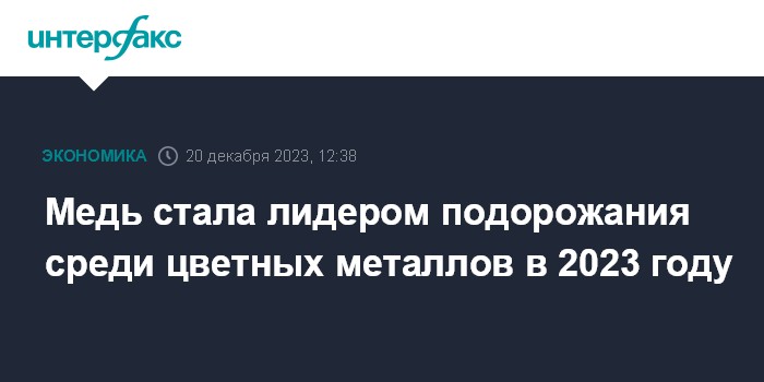 Москва. 20 декабря. INTERFAX.RU - Медь завершает 2023 год с наиболее существенным повышением цены среди цветных металлов из-за перебоев с поставками, пишет Financial Times.