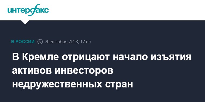В Кремле отрицают начало изъятия активов инвесторов недружественных стран
