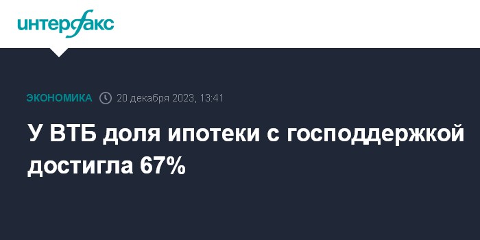 У ВТБ доля ипотеки с господдержкой достигла 67%