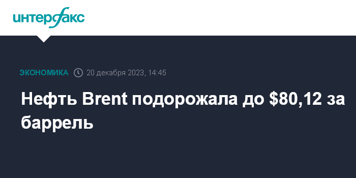 Нефть Brent подорожала до $80,12 за баррель