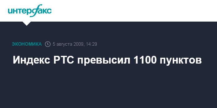 Москва. 5 августа. INTERFAX.RU - Индекс РТС, один из основных российских фондовых индикаторов, к 14:06 мск пробил отметку 1100 пунктов. Он достиг уровня 1100,23 пункта, повысившись с уровня открытия на 2,5%.