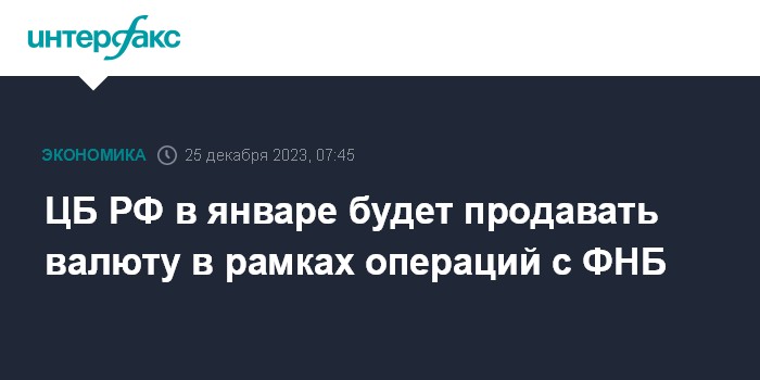 ЦБ РФ в январе будет продавать валюту в рамках операций с ФНБ