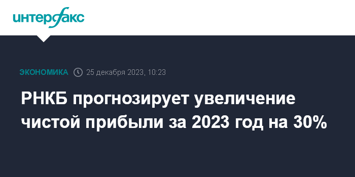 РНКБ прогнозирует увеличение чистой прибыли за 2023 год на 30%