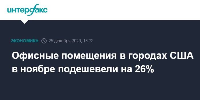 Офисные помещения в городах США в ноябре подешевели на 26%