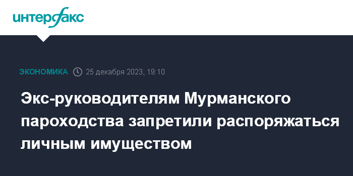 Москва. 25 декабря. INTERFAX.RU - Арбитражный суд Мурманской области по заявлению регионального управления ФНС ввел обеспечительные меры в отношении бывших руководителей АО "Мурманское морское пароходство" (ММП, признано банкротом), говорится в картотеке суда.