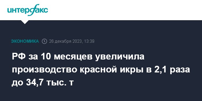 РФ за 10 месяцев увеличила производство красной икры в 2,1 раза до 34,7 тыс. т