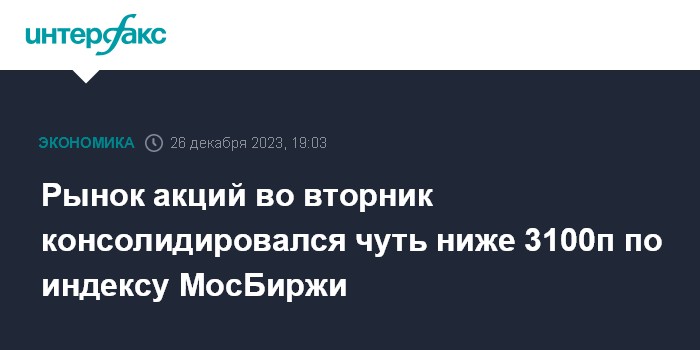 Рынок акций во вторник консолидировался чуть ниже 3100п по индексу МосБиржи