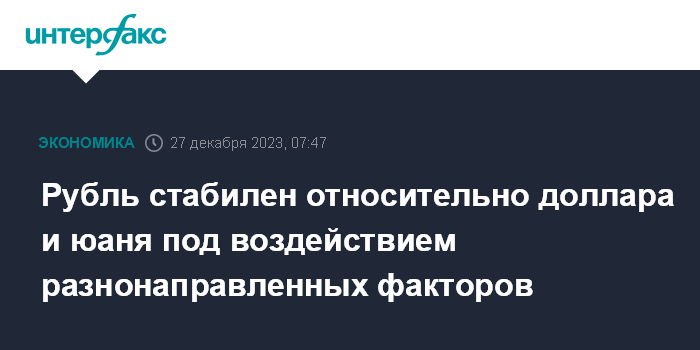 По мнению экспертов "Интерфакс-ЦЭА", рубль стабилен под воздействием противоречивых факторов. С одной стороны, поддержку нацвалюте оказывает подготовка компаний-экспортеров к налоговым выплатам декабря: в четверг, 28 декабря, им предстоит перечислить в бюджет НДС, страховые взносы, НДФЛ, НДПИ и акцизы. Мировые рынки капитала в основном растут.