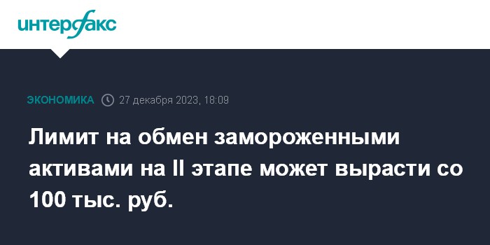 Лимит на обмен замороженными активами на II этапе может вырасти со 100 тыс. руб.