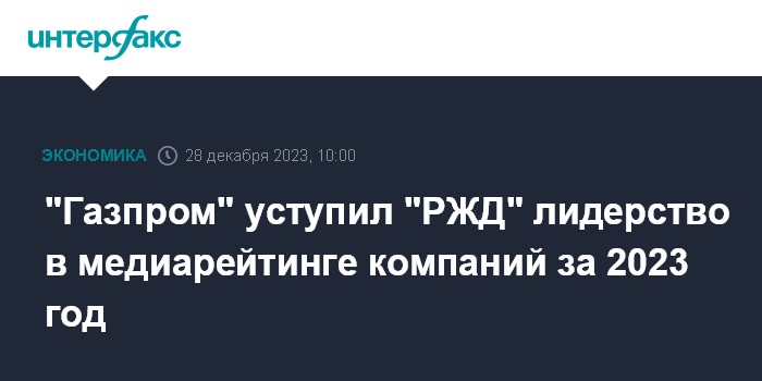 "Газпром" уступил "РЖД" лидерство в медиарейтинге компаний за 2023 год