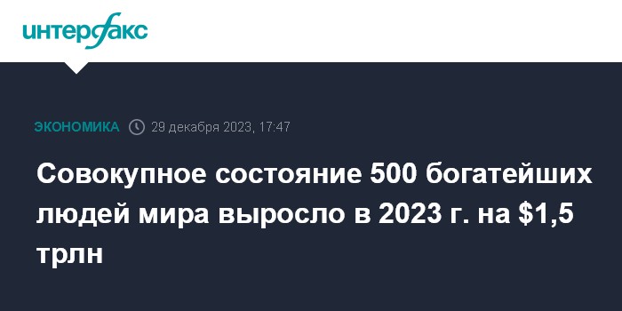 Совокупное состояние 500 богатейших людей мира выросло в 2023 г. на $1,5 трлн