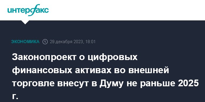 Законопроект о цифровых финансовых активах во внешней торговле внесут в Думу не раньше 2025 г.