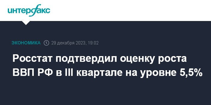Таким образом, Росстат подтвердил предыдущую оценку роста ВВП в III квартале на уровне 5,5%, сделанную производственным методом.