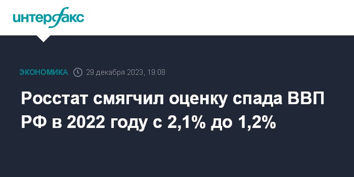 Росстат смягчил оценку спада ВВП РФ в 2022 году с 2,1% до 1,2%